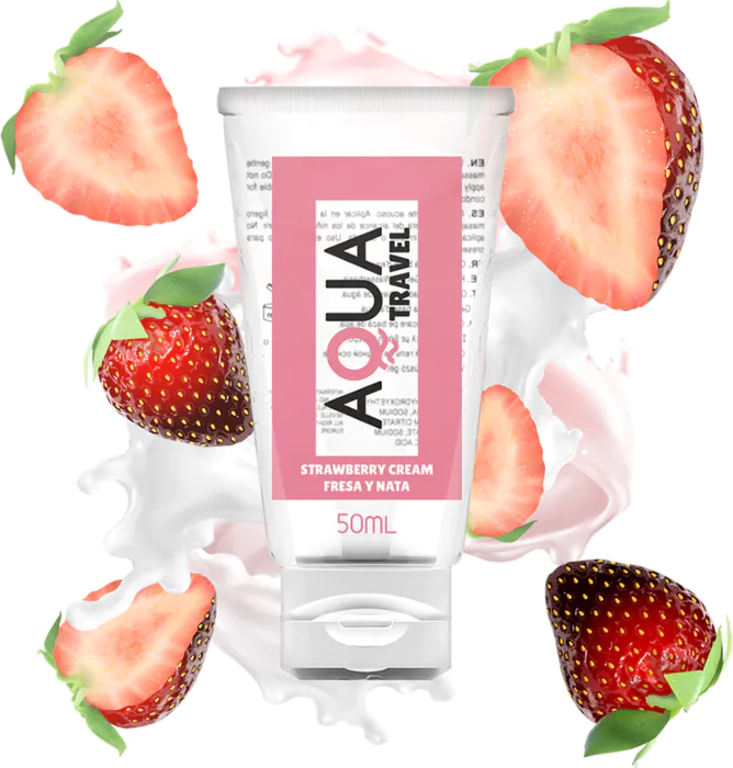 Aqua Travel Gleitmittel bringt aufregenden Erdbeer-Creme-Geschmack in deine Intimität. Indicado für Sexspielzeug und den empfehlenswerten Begleiter für den Oralverkehr. Compact und einfach zu reinigen.