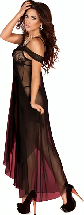 Erlebe ein Gefühl von Eleganz und Sinnlichkeit mit dem langen Babydoll CR 3716 von Chilirose, das aus hochwertiger Mesch und einem geheimnisvollen Spitzenoberteil gefertigt ist. Die kühne Öffnung sorgt für einen aufregenden Blickfang und umschmeichelt deinen Körper auf luxuriöse Weise.