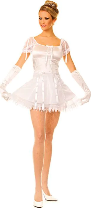 Für Kostümpartys und Rollenspiele: feminines Satin-Ballerina-Kleid in S/M mit Handschuhen.