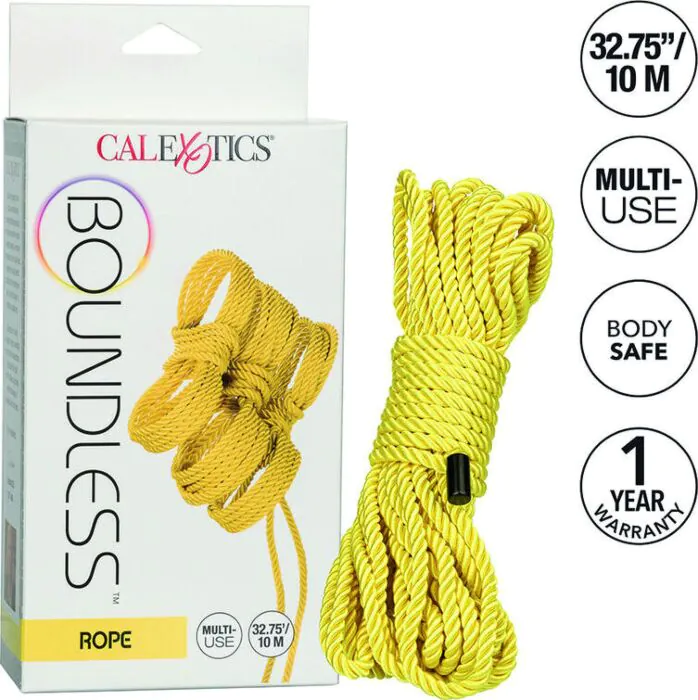Die BOUNDLESS Cuerda von CALEXOTICS ist empfehlenswert für BDSM-Enthusiasten, die kreative Fesselungen lieben. Hergestellt aus 70% Baumwolle und 30% Polyester, bietet sie sowohl Haltbarkeit als auch Komfort.