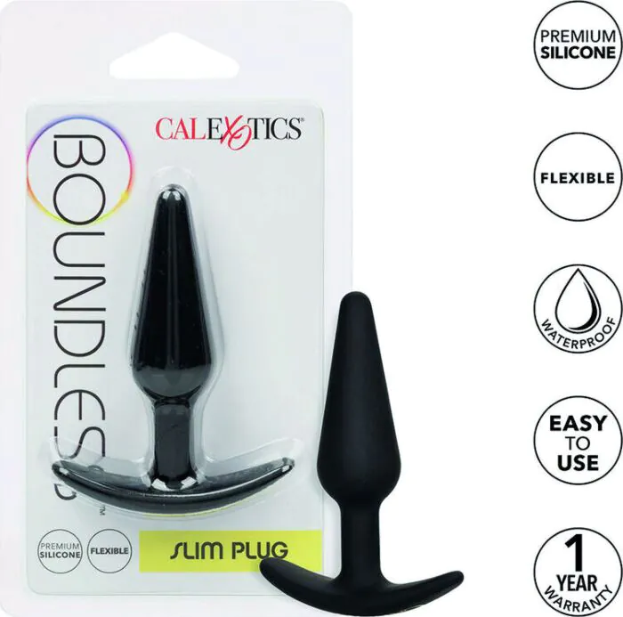 Erlebe grenzenloses Vergnügen mit dem Boundless Slim Plug von CALEXOTICS, der dank seines schlanken, konischen Designs mühelos in die aufregende Welt der anale Stimulation einführt. Hergestellt aus hautfreundlicher, nahtloser Silikonqualität, bietet dieser Plug nicht nur Freude, sondern auch Sicherheit für den Körper.