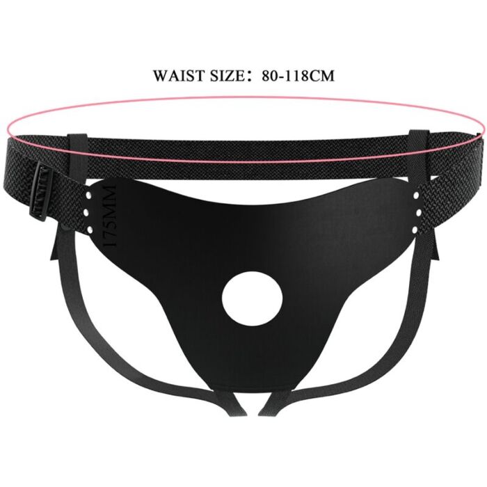 Verstellbarer Strap-On-Gurt von PRETTY LOVE MALE mit zusätzlichem Riemen für größere Hüften. Robust verarbeitet aus PU, ABS, Metall und Nylon; wasserdicht und offen gestaltbar, sodass auch Männer mit Sleeve tragen können. Kein Dildo/Vibrator enthalten – kompatibel mit vielen gängigen Aufsätzen. Für Paare und Einsteiger, die Flexibilität und einfache Pflege wünschen.