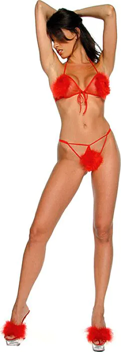 Leichtes, transparentes BH- und Tanga-Set von Music Legs mit dekorativen Pom-Poms aus Federn. Für dich, wenn du ein verspieltes, auffälliges Set für Boudoir, Rollenspiele oder Fotos suchst. Keinen starken Halt erwarten — hier stehen Optik und Accessoire-Charakter im Vordergrund. Praktisch als Geschenk oder Ergänzung im Erotikshop-Angebot.