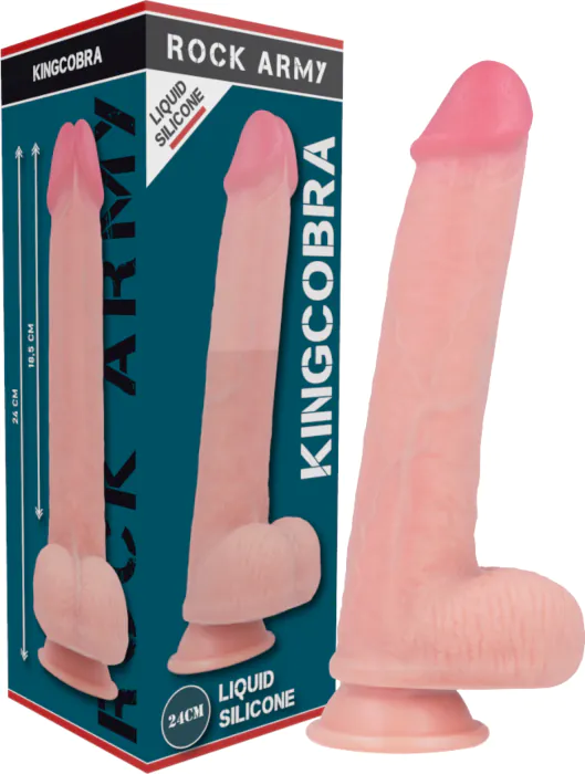 Erlebe das Gefühl eines realistischen Dildos mit dem Kingcobra von ROCK ARMY. Praktisch für Liebhaber von intensiven Empfindungen. Efficaz für vaginalen und analen Gebrauch.