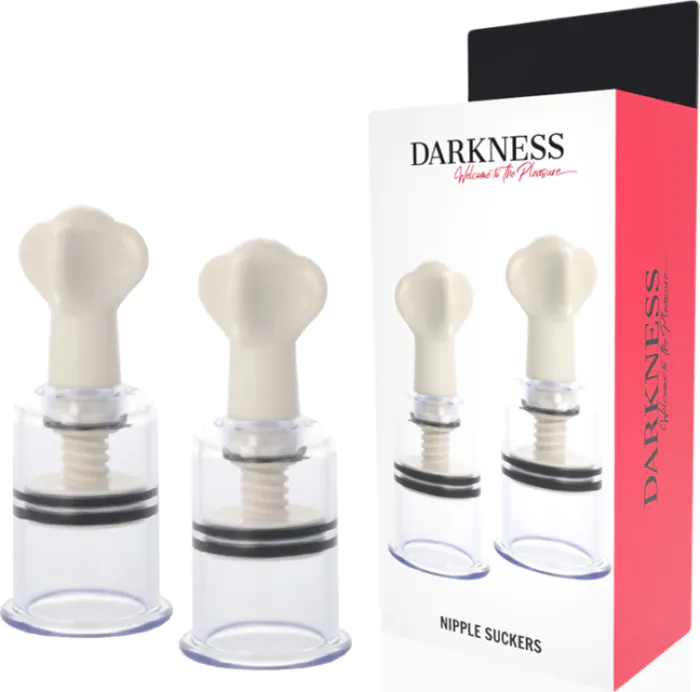 Die Saugnäpfe von DARKNESS bieten eine effektive und angenehme Stimulation der Brustwarzen. Einfach zu handhaben, indicado für Einsteiger im Fetischbereich.