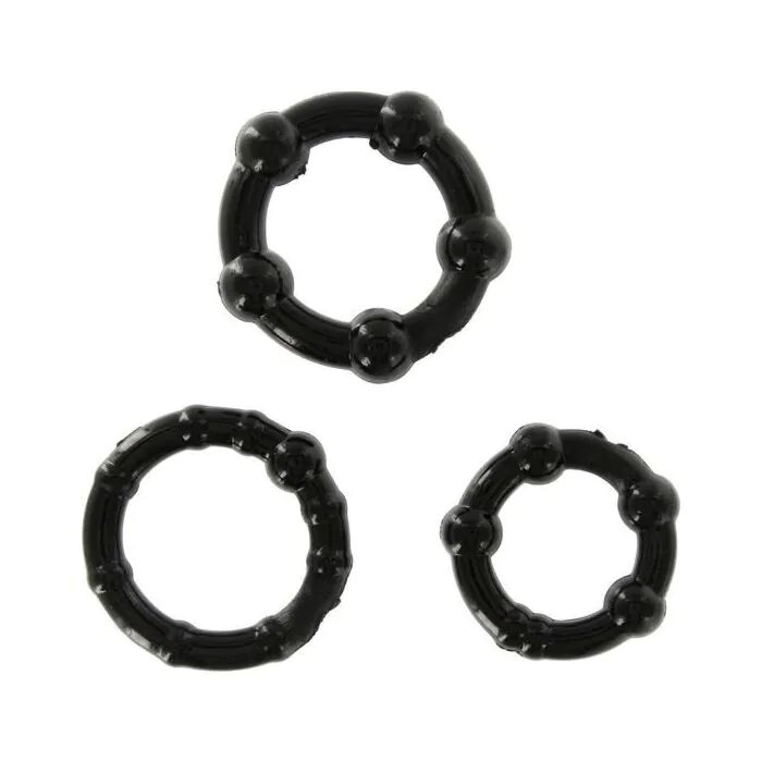 Wie wird das Set von drei schwarzen Penisringen verwendet?