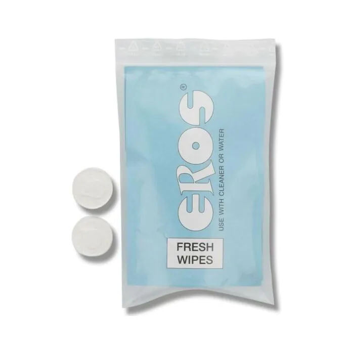 EROS Intim-Wipes kommen trocken verpackt und werden erst bei Bedarf mit Wasser oder einem milden Reiniger aktiviert. 12 leicht transportable Einheiten, 100% natural — gut für unterwegs oder nach dem Sport. Für dich, wenn du eine reizärmere, konservierungsmittelarme Alternative zu vorfeuchteten Tüchern suchst; nicht geeignet als sterile Wundversorgung.