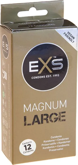 Die Exs Magnum Large Kondome bieten einen sicheren und komfortablen Sitz für größere Penisse. Hergestellt aus natürlichem Latex und mit Silikon geschmiert, sorgen sie für ein hautnahes Gefühl.