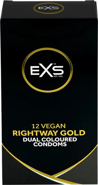 Die Rightway Gold von Exs sind vegane Latexkondome im 12er-Pack mit einer sichtbaren goldenen Spitze und mattweißem Innenrand, die das Aufsetzen erleichtern. Mit Reservoir und silikonbasiertem Gleitmittel bieten sie einen angenehmen Sitz für durchschnittliche Größen. Ideal, wenn du Wert auf einfache Handhabung und geprüfte Qualität im Erotikshop legst.
