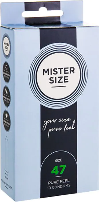 Die MISTER SIZE XS 47 MM Kondome bieten einen sicheren und antirutsch Sitz für schlanke Penisse. Genießen Sie pure Intimität mit ultrafinem Latex.