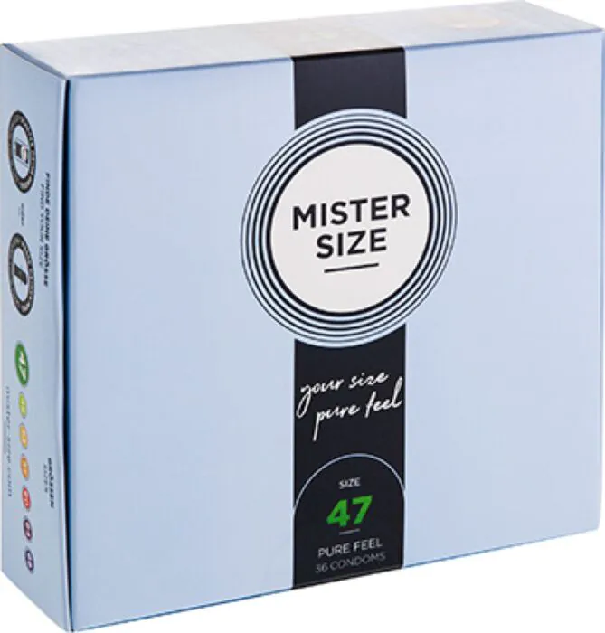 Die MISTER SIZE Kondome in Größe XS bieten einen sicheren Sitz und höchste Sensibilität für schmale Penisse. Ultrafine Beschaffenheit für intensiven Genuss.