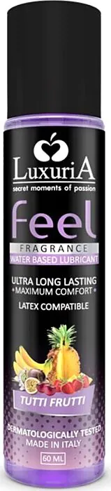 Luxuria Feel Tutti Frutti ist ein wasserbasiertes Intimgleitmittel, das für sanfte Feuchtigkeit sorgt und Beschwerden während des Geschlechtsverkehrs vorbeugt. Indicado für Paare, die ihre Intimität bereichern möchten.