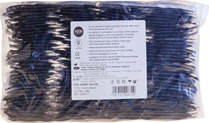 Die Jumbo XL Kondome von Exs bieten eine großzügige Breite für ein sicheres und komfortables Erlebnis. Indicado für größere Penisse und vollständig vegan.
