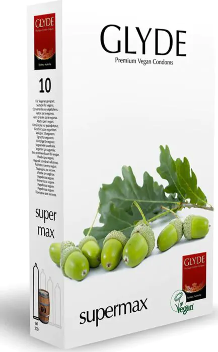 Die Glyde Ultra Supermax Kondome bieten eine ausgezeichnete Passform und sind 100% vegan. Ein kleiner Nachteil ist, dass sie nur in einer großen Größe verfügbar sind, was sie für kleinere Penisse ungeeignet macht.