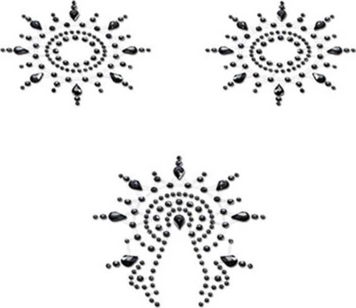 Gloria von Petits Joujoux sind dekorative Nippelpasties und Pubis-Steine im 3er-Set mit über 300 funkelnden Kristallen. Für dich, wenn du deinem Outfit mehr Glamour geben oder Dessous-Shows betonen willst. Komfortabel, wiederverwendbar mit Körperkleber und leicht zu entfernen. Geeignet für alle, die Körperdekoration in einem Erotikshop-Qualitätsprodukt suchen, weniger für empfindliche Haut ohne Test.