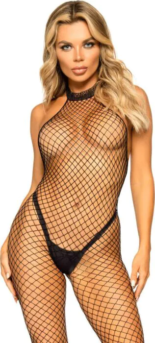 Der bodystocking von Leg Avenue kombiniert Komfort und Verführung in einem einzigartigen Design. Das industrielle Netzmaterial sorgt für eine sinnliche Ausstrahlung, während der Halterkragen und der Rückenfrei-Schnitt die feminine Silhouette betonen.