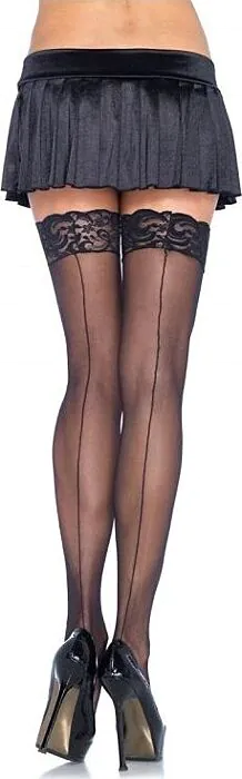 Schwarze Strümpfe Leg Avenue mit Naht und Spitze
