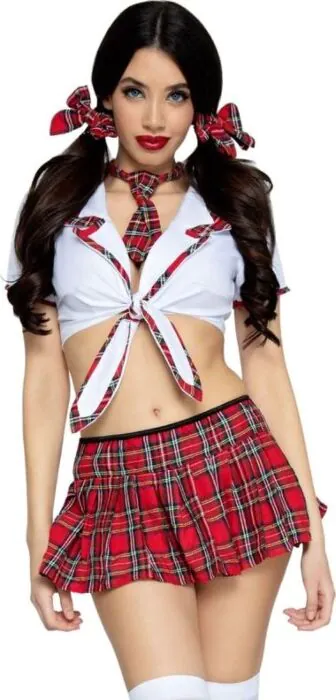 Das Miss Schulmädchen Kostüm von Leg Avenue kombiniert Spaß und Verführung. Indicado für Halloween oder Kostümpartys, um alle Blicke auf sich zu ziehen.