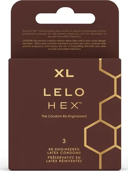 In einer Packung befinden sich drei LELO HEX RESPECT XL Kondome, indicado für gelegentliche Nutzung oder zum Ausprobieren.
