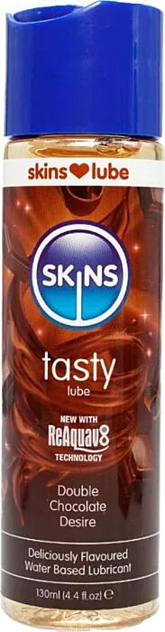 Wasserbasiertes, aromatisiertes Gleitgel von SKINS mit intensivem Doppelschokoladen-Geschmack. Reaktivierbare Reaquav8‑Formel sorgt dafür, dass feuchte Momente nach einem leichten Löffel oder Spritzer Wasser wieder auffrischen. Vegan, nicht färbend und kompatibel mit Latex und den meisten Sexspielzeugen – besonders geeignet für orale Spiele und sinnliche Ergänzung beim Einsatz von Vibratoren oder anderen Intimprodukten.