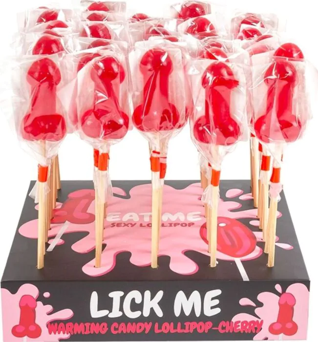 Für Junggesellinnenabschiede und verspielte Paare: kompakter, essbarer Kirsch-Lutscher mit Wärmeeffekt.