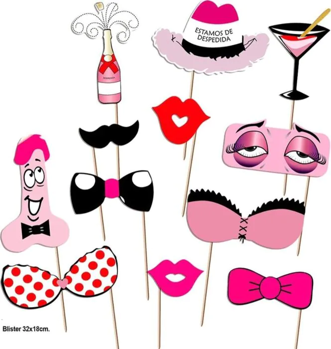Lustiges Set mit 12 Photocall-Zubehörteilen, gestaltet für jede Feier. Perfekt für Junggesellenabschiede und Themenpartys. Einfach zu verwenden!