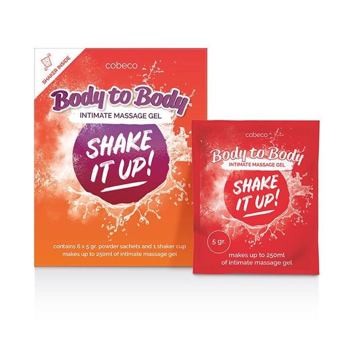 Shake it up ist ein Massagegel, das in 4 einfachen Schritten hergestellt und einfach aus dem in der Verpackung enthaltenen Shake-Becher über die Körper gegossen werden kann. Die Dicke und Menge des Gels kann vom Schüttler bestimmt werden. Je mehr Wasser, desto dünner das Gel. Der Shaker steuert, wie rutschig / glatt (die Bedeutung des Wortes Nuru auf Japanisch) der physische Kontakt während der Massage sein wird.