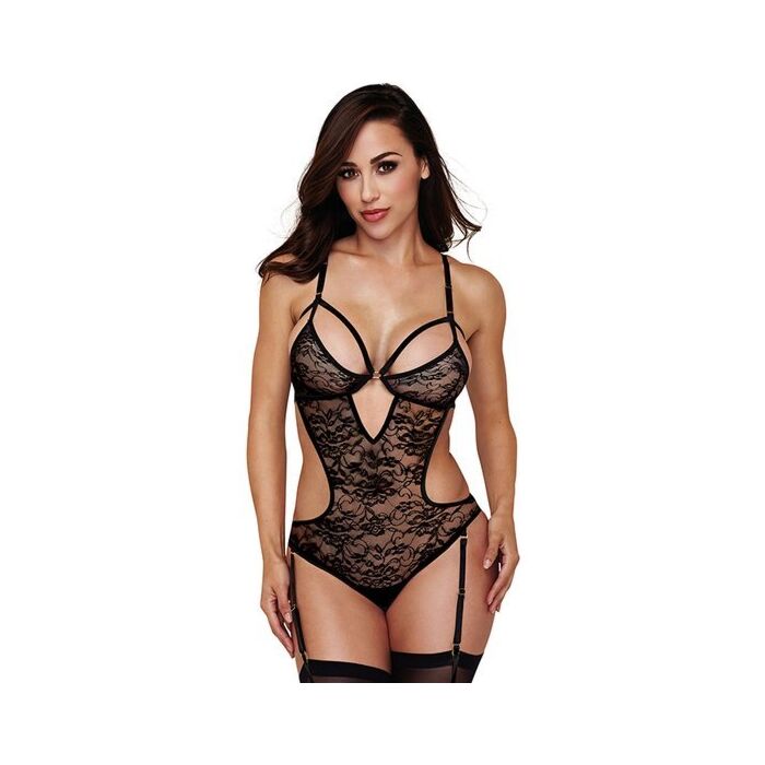 Sexy Spitzenteddy mit Strumpfbändern - Spitzenbodysuit mit Strumpfgürtel