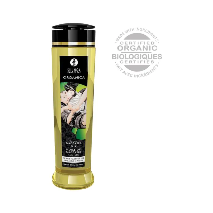 SHUNGA KISSABLE MASSAGE OIL ORGANICA ist ein sinnliches Massageöl von hoher Qualität ORIENTALISCHEN Ursprungs, das aus einer Mischung von ätherischen Ölen aus süßen Mandeln, Traubenkernen, Sesam, Avocado, reiner Essenz von Ylang-Ylang und Yohime besteht.