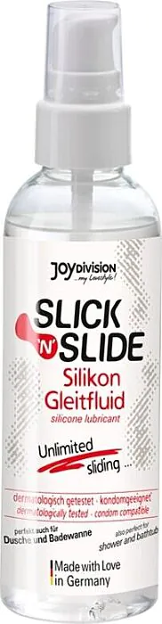 Langanhaltende Gleitfähigkeit und eine angenehme Textur dank hochwertiger Silikonbasis. SLICK'N'SLIDE von JOYDIVISION ist 100% kompatibel mit Kondomen und bietet eine medizinisch zugelassene Qualität. Der pH-optimierte, fettfreie und hydrosoluble Gleitstoff sorgt für ein unvergleichliches Erlebnis – auch beim Sex unter Wasser!