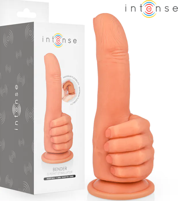 Der BENDER von INTENSE vereint eine flexible Handform mit einer realistischen Textur. Indicado für präzise G-Punkt-Stimulation und vielseitige Anwendungen.