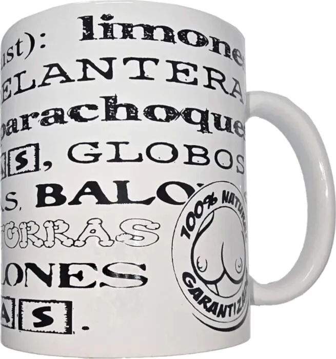Beginne deinen Tag mit einem Lächeln und genieße deinen Kaffee oder Tee aus dieser humorvollen Keramiktasse. Das design enthält Worte, die Synonyme für 'Tetas' sind, und sorgt so für einen mutigen und lustigen Akzent. Hergestellt aus strapazierfähiger Keramik, hält sie den täglichen Herausforderungen stand und ist indicado für besondere Anlässe.