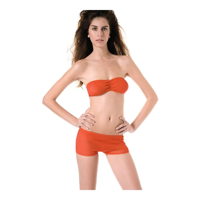 Top que solo cubre los pecho con costura en el medio para mejor sujeción y mini short de tela muy ajustada al cuerpo.Color: Rojo