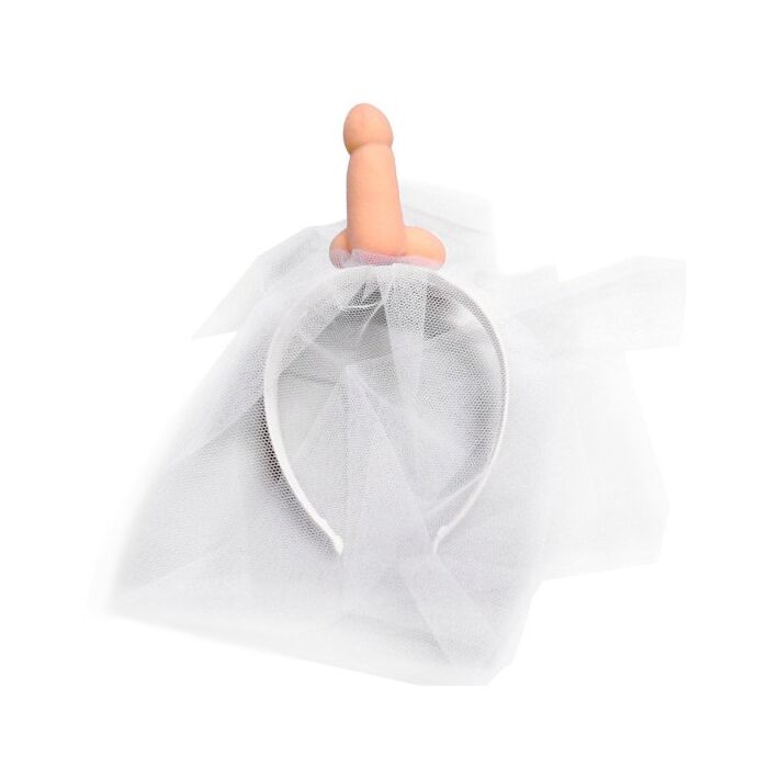 Fantastischer weißer Bachelorette-Schleier mit einem Stirnband und einem dekorativen Plüsch-Penis.