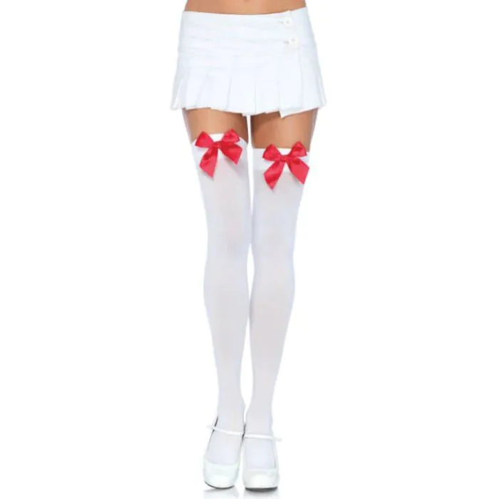 Wagen Sie es zu experimentieren und zu verführen mit den Leg Avenue Nylonstrümpfen in Weiß mit roter Schleife. Holen Sie sich sie jetzt und verleihen Sie Ihrem Stil einen Hauch von Schalkhaftigkeit und Raffinesse!