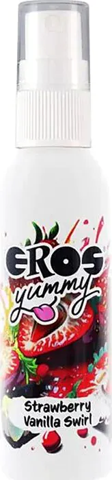 Erlebe sinnliche Momente mit dem EROS Yummy Spray. Dieses besbare Körperspray mit Erdbeer-Vanille-Geschmack ist indicado für intime Augenblicke und hinterlässt keine Rückstände.